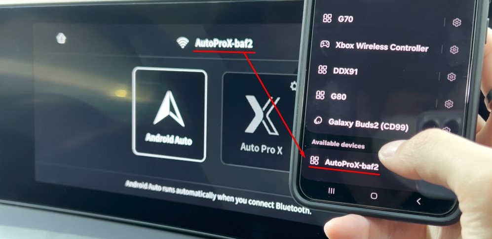 Find and connect to the ‘AutoproX_OOOO’ Bluetooth that matches the serial number displayed on the initial screen.