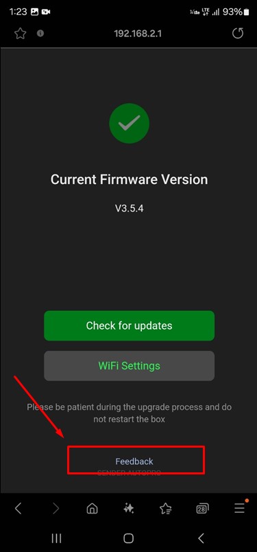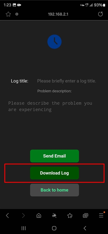 The initial screen will appear as shown below. (If the initial screen does not appear, the connection may not have been established correctly.) Select the 'Feedback' section at the bottom of the screen to enter the log screen.